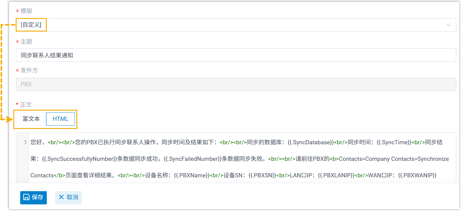 - 支持以 HTML 模式编辑以下自定义邮件模板,包括:
