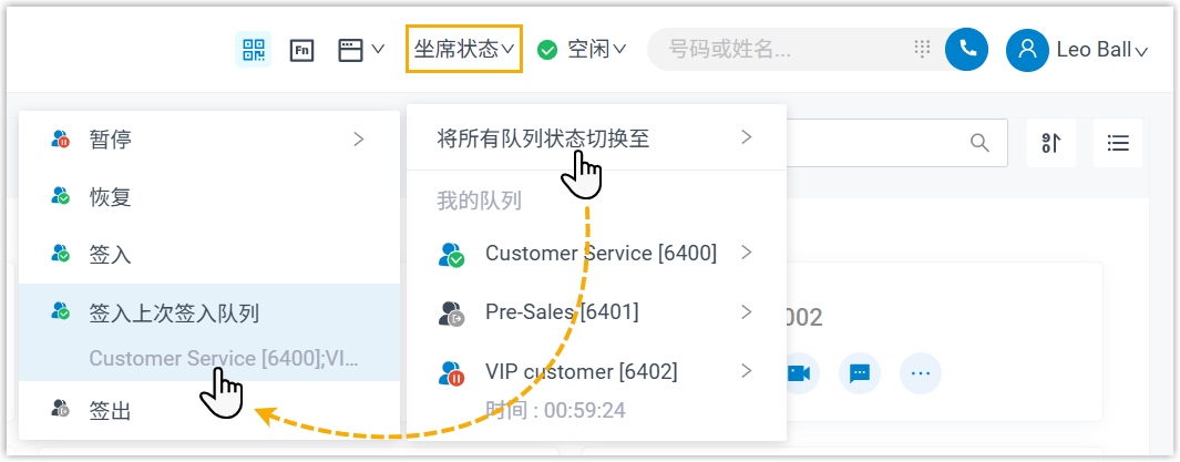 - 优化队列坐席使用体验:支持 签入上次签入队列