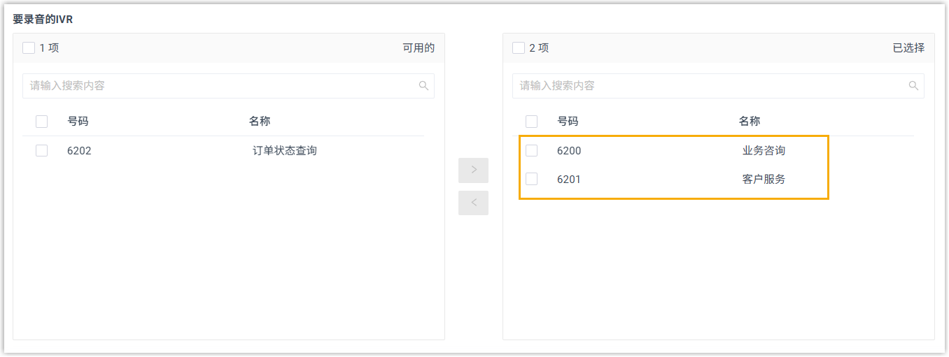 - 支持为 IVR 设置通话录音 (路径:)。启用后,系统会自动录制所选 IVR 的通话。