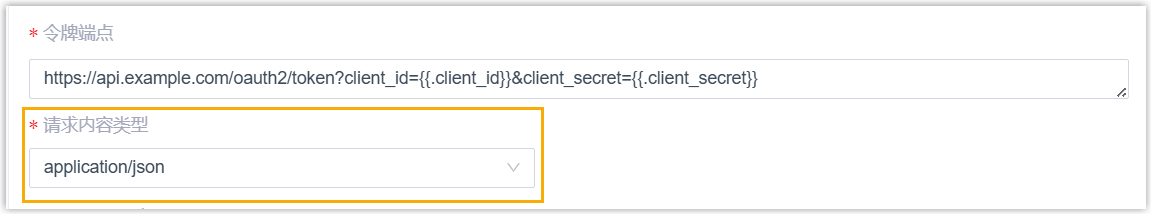 功能 说明 认证方式 新增配置项 请求内容类型 (路径:)。 当认证方式设置为 OAuth2 或 Bearer Token 时,可使用该配置项设置令牌获取请求所使用的内容类型。