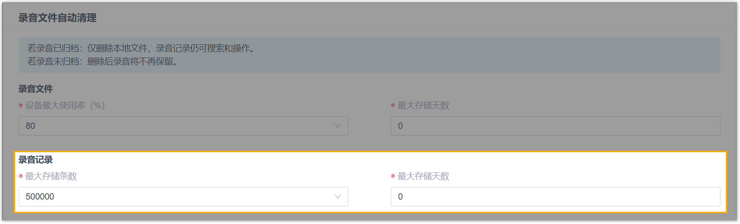 - 新增录音记录相关配置项 最大存储条数 和 最大存储天数 (路径:),可用于设置录音记录存储的最大条数和最大天数。