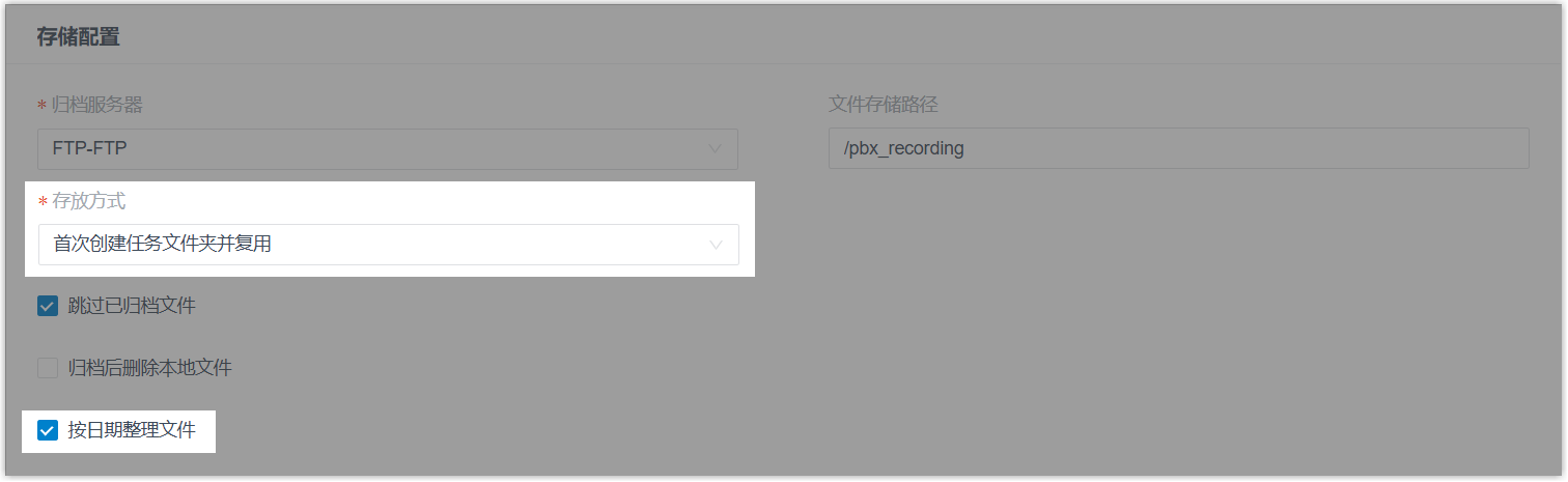 - 按日期整理文件:设置是否在存储路径下自动将归档文件整理到基于日期创建的子文件夹