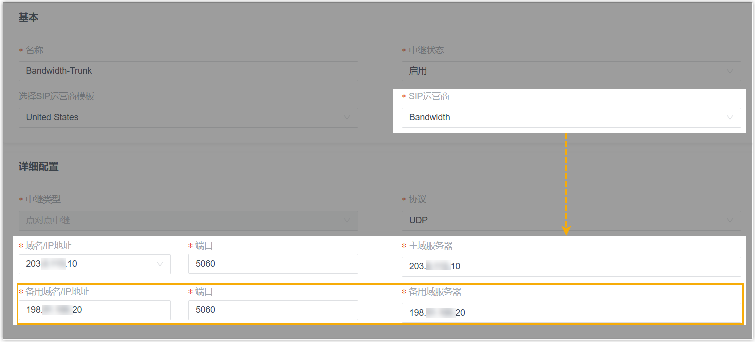 点对点中继模板添加中继时,支持配置备用服务器设置,以提供故障转移能力。