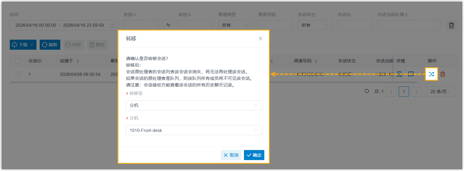 。可快速筛选出已被删除分机和队列的聊天会话。