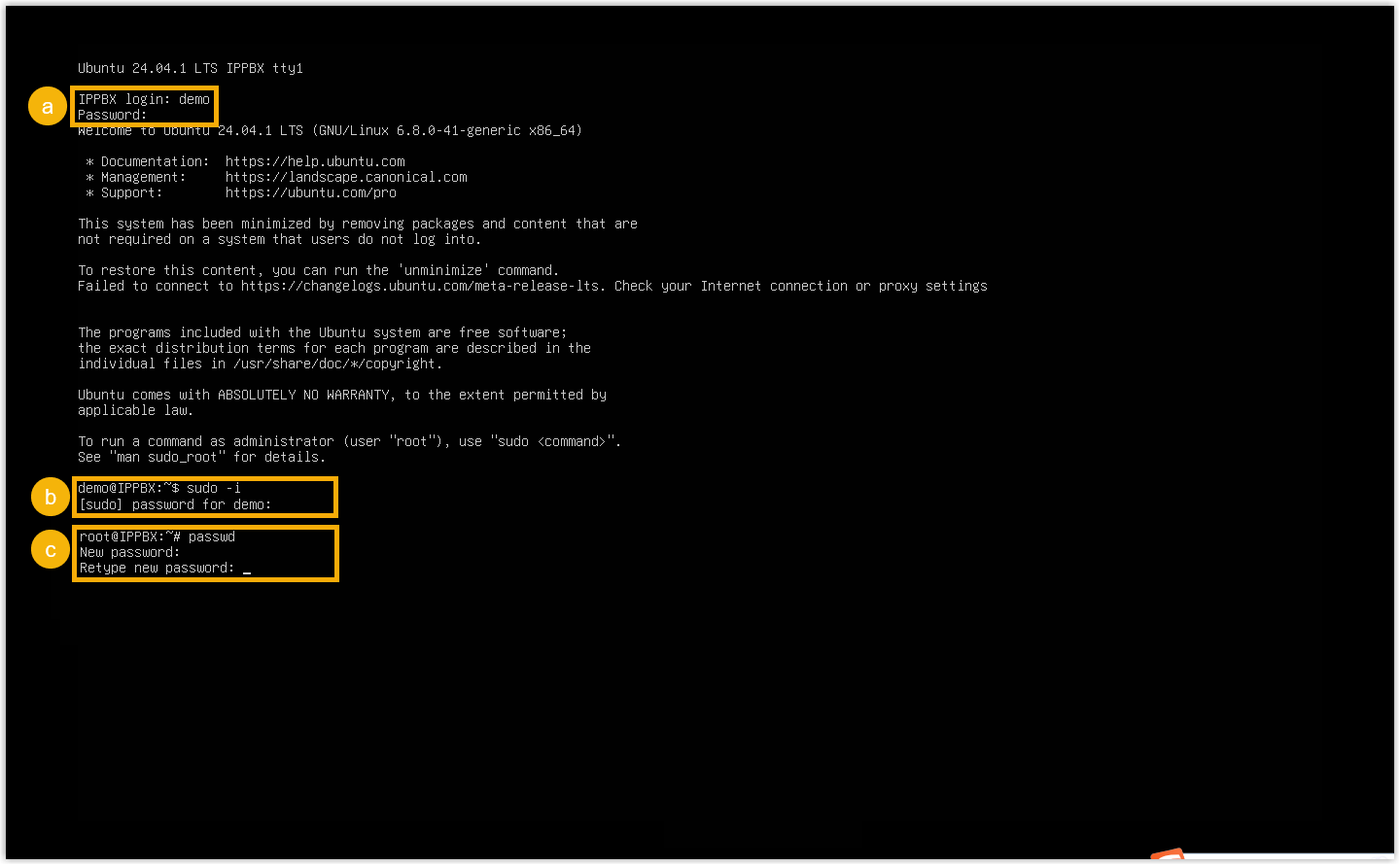 - 安装完成后,以 root 用户身份登录系统。注: 如果你自动安装 PBX,请联系 Yeastar 技术支持获取 root 凭证。