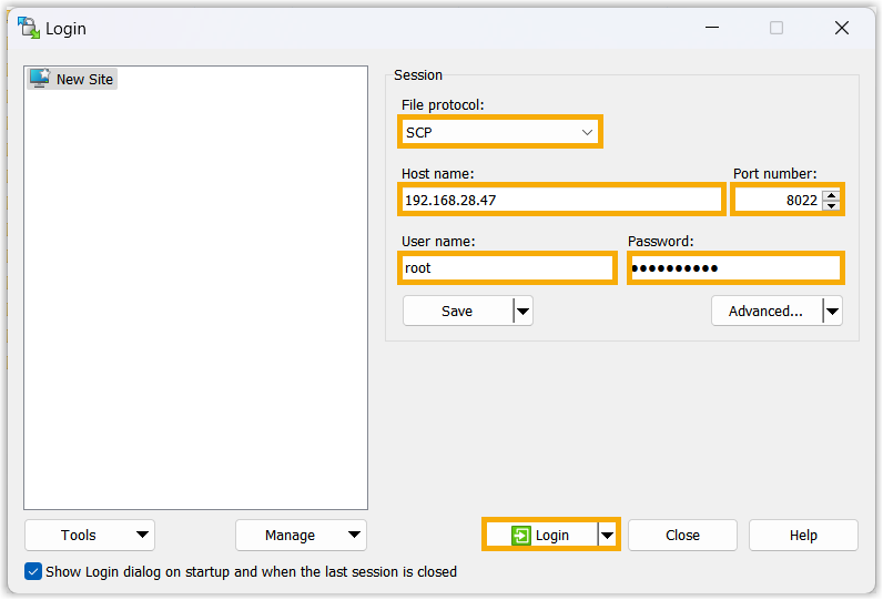 我们以 WinSCP 为例,介绍如何通过 SSH 访问 PBX 并上传文件。