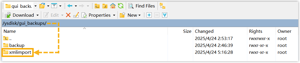 进入目录 /ysdisk/gui_backups/,并创建子目录 xmlimport。