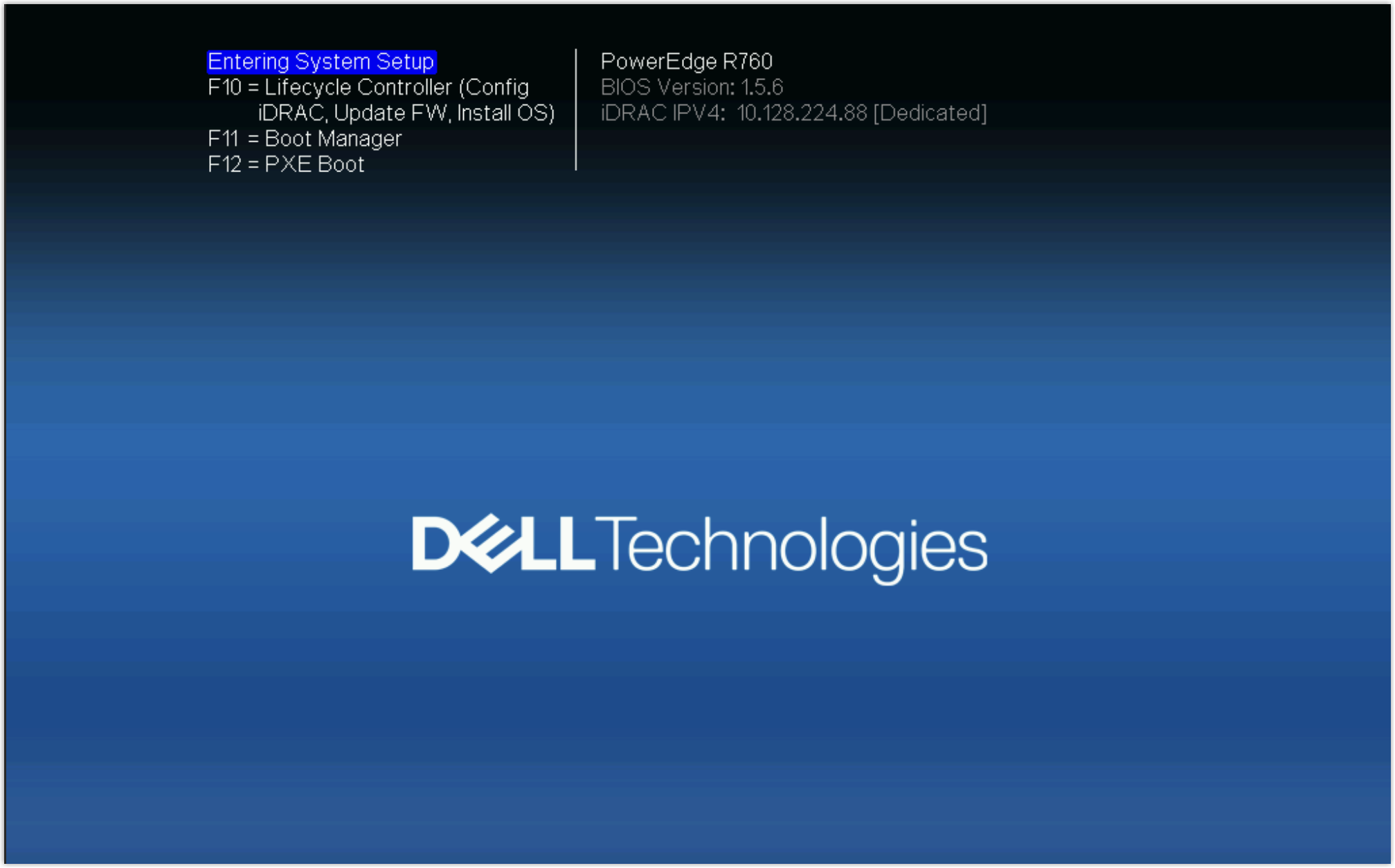 Ctrl+Alt+Delete键重启服务器。 - 重启过程中,当屏幕上出现如下画面时,按