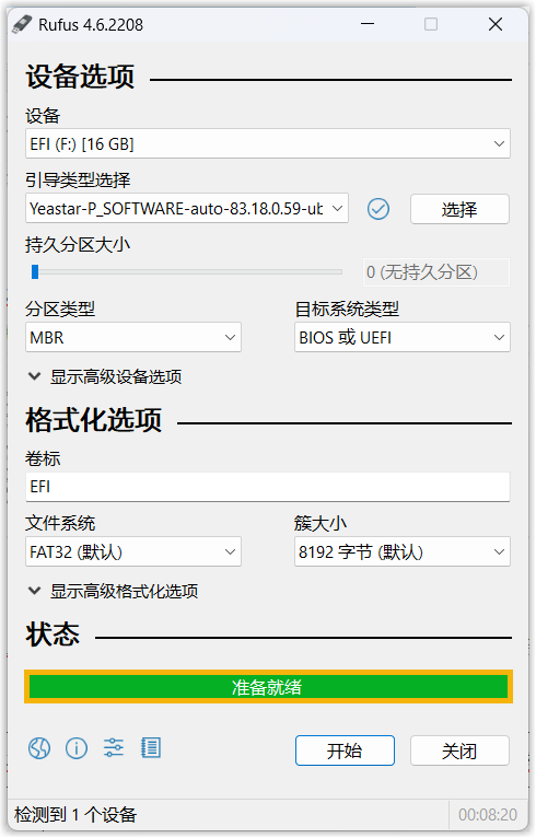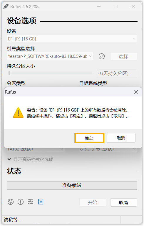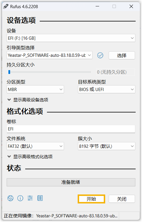 状态显示为 “准备就绪” 时,表示镜像写入完成。