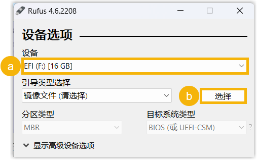 - 使用 Rufus 打开 P 系列软件版镜像文件。