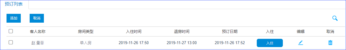 1. 进入 酒店 > 入住管理 > 预定列表,点击 添加