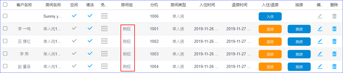 客人入住之后,前台人员可以将同一个团体的客户房间分为同一个组,便于酒店管理。