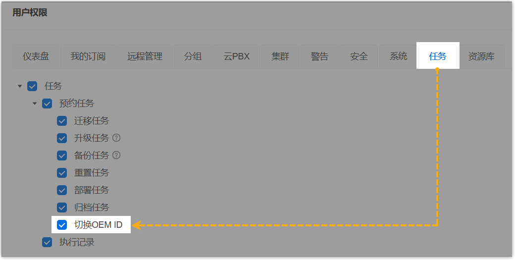 - 新增任务类型 切换 OEM ID,允许你为 P 系列云 PBX 或远程连接到平台的