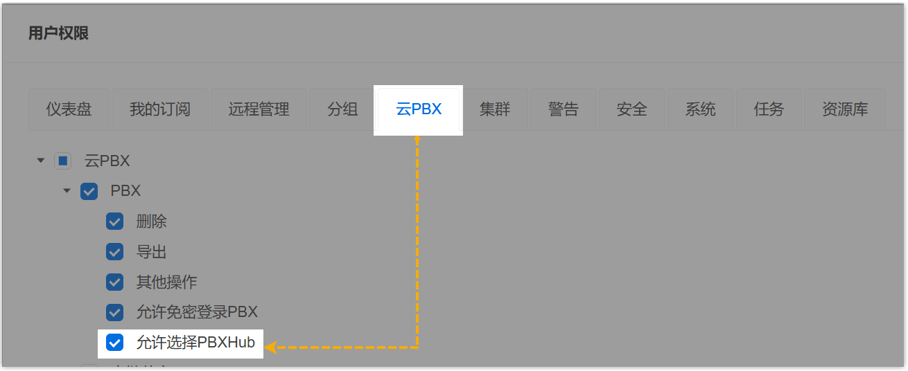 - 允许选择PBXHub:允许用户在创建云 PBX 时选择