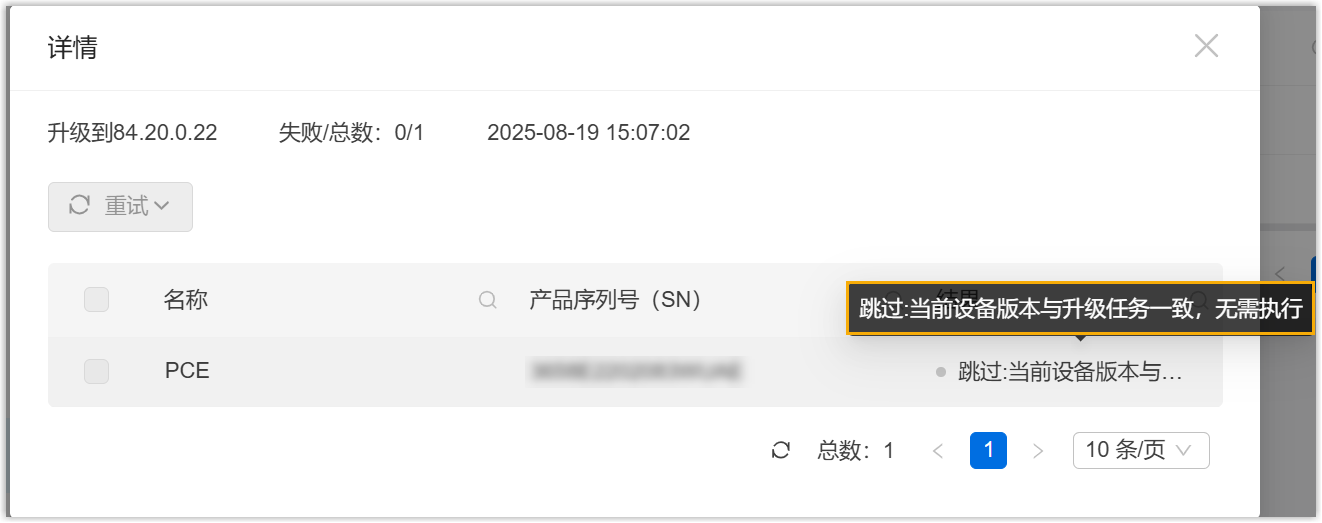 - 升级任务新增执行结果 跳过:对于无需执行的对象,系统会自动跳过执行。
