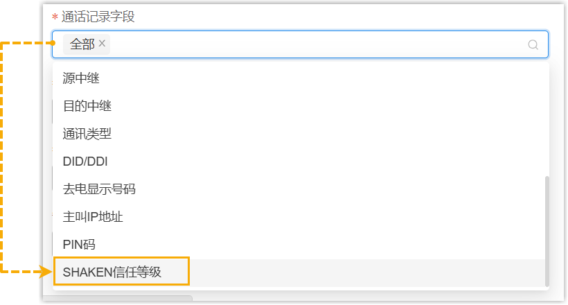SHAKEN信任等级,该字段记录了通话的 SHAKEN