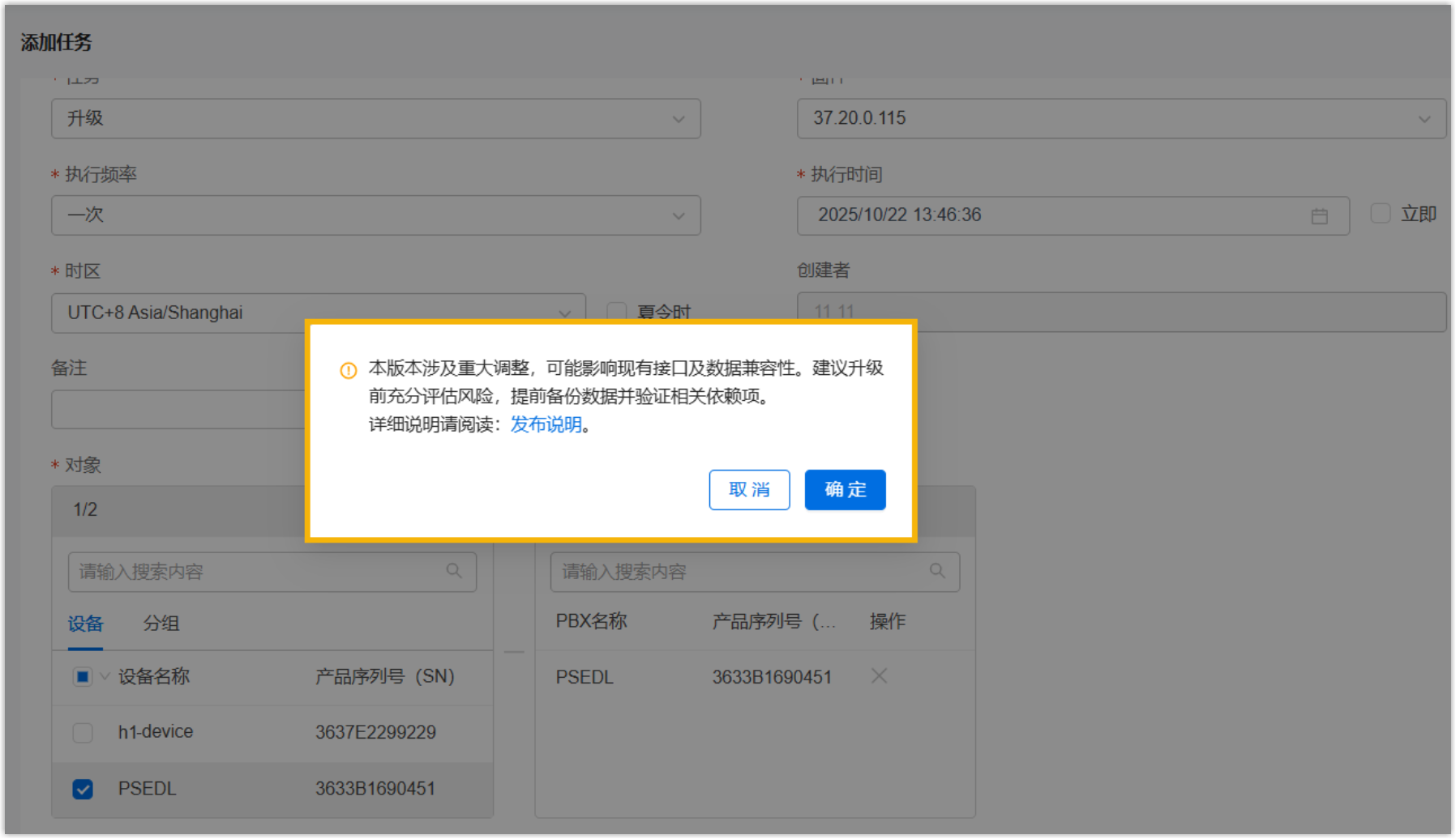 - 优化 升级 任务:当创建任务将 P 系列 PBX