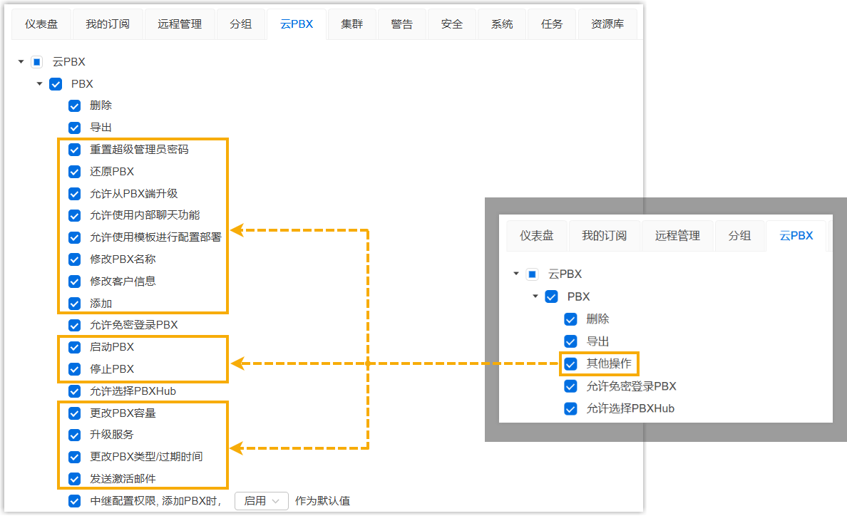 - 优化 云 PBX 的用户权限控制 (路径:):