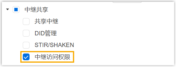 中继访问权限,允许你将此功能权限分配给同事或下级用户。获得此权限的用户可将自己的共享中继及