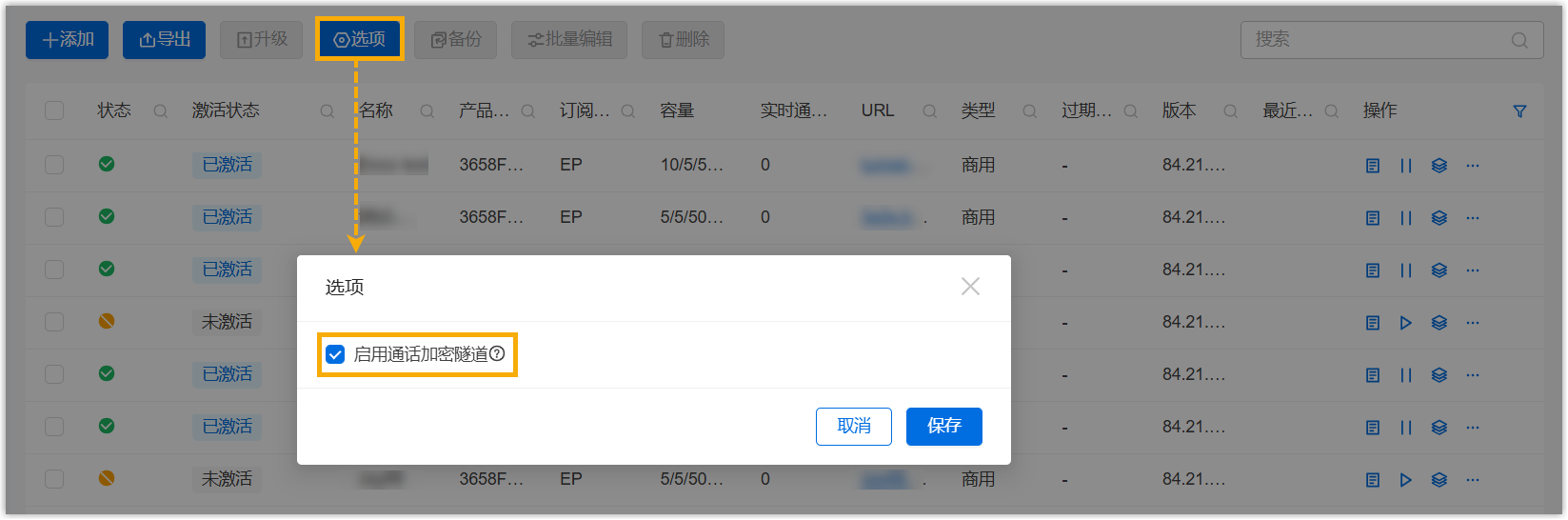 - 新增云 PBX 全局配置项 启用通话加密隧道 (路径:)。该配置项启用后,将应用于所有云 PBX。