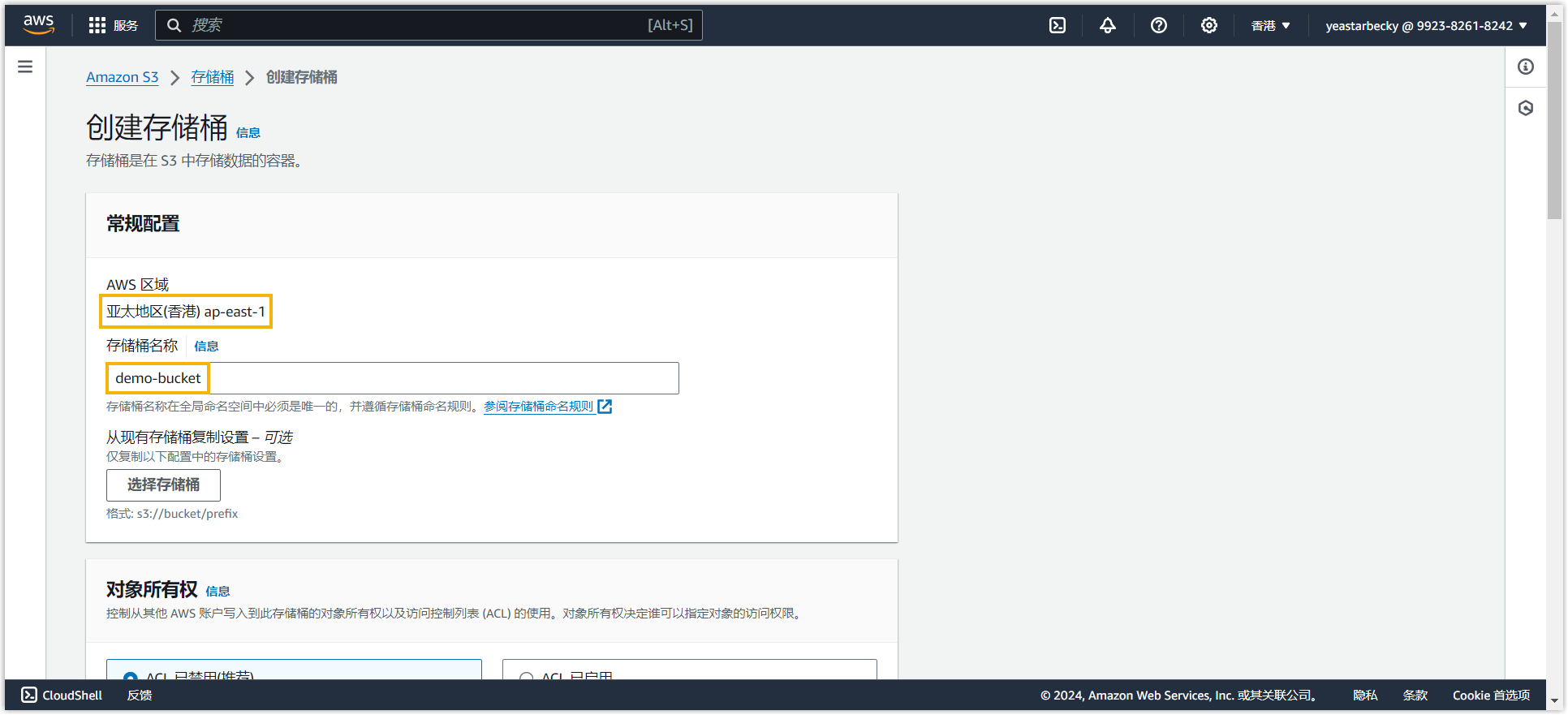 步骤二、在 AWS 上创建 Amazon S3 存储桶