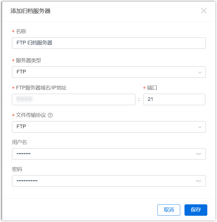 步骤一、添加 FTP 服务器为归档服务器
