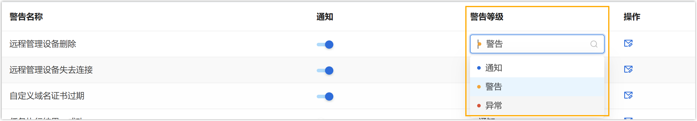 - 在 通知 列,为警告启用通知。