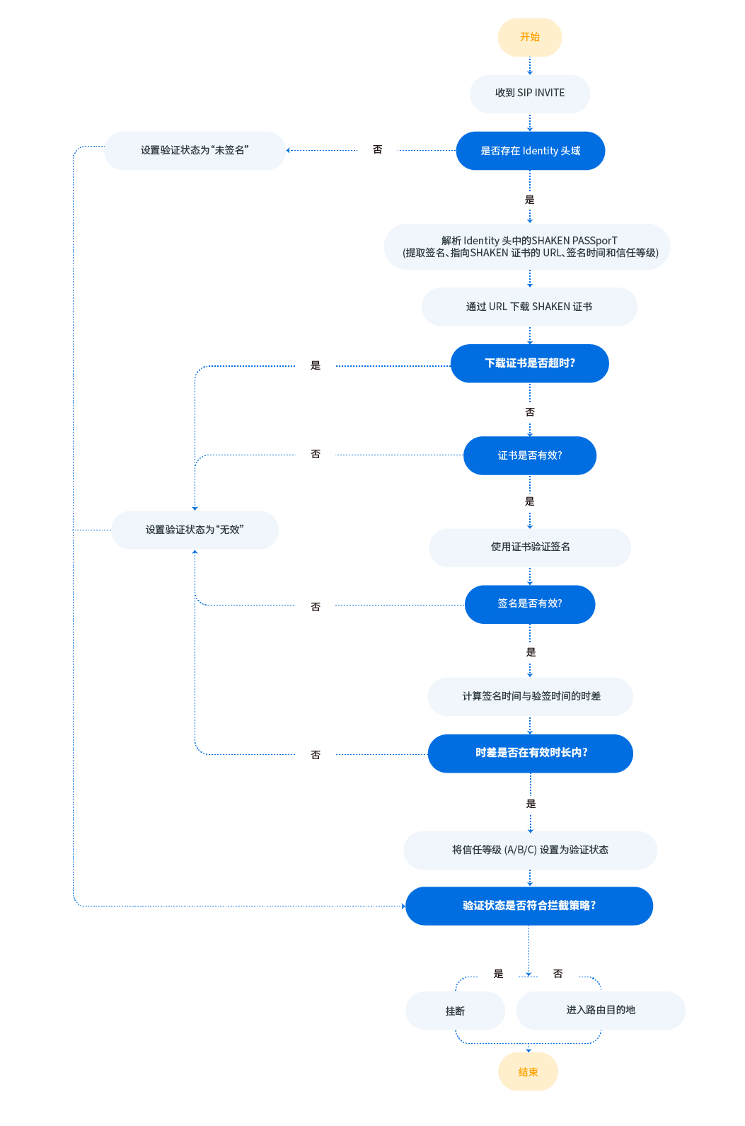 Identify头域缺失。 - Invalid:签名无效 (如签名无效或证书已被撤销的来电)。