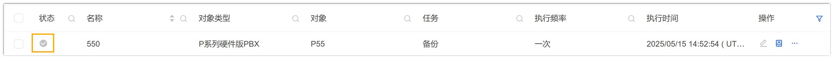 设置 说明 名称 填写一个名称,帮助你识别该任务。 对象类型 选择 P系列硬件版PBX 或 P系列软件版PBX。