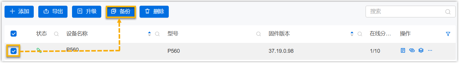 - 勾选要备份的 PBX,然后点击 备份。注: 批量备份时,需选择同一产品型号的设备。