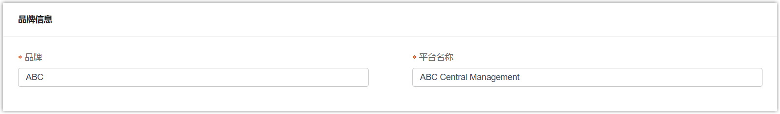 设置 说明 品牌 输入你的品牌名称。 平台名称 输入你的平台名称。 - 在 其他信息 栏,自定义平台的显示内容。提示: 你可以在页面右侧预览所做的更改。