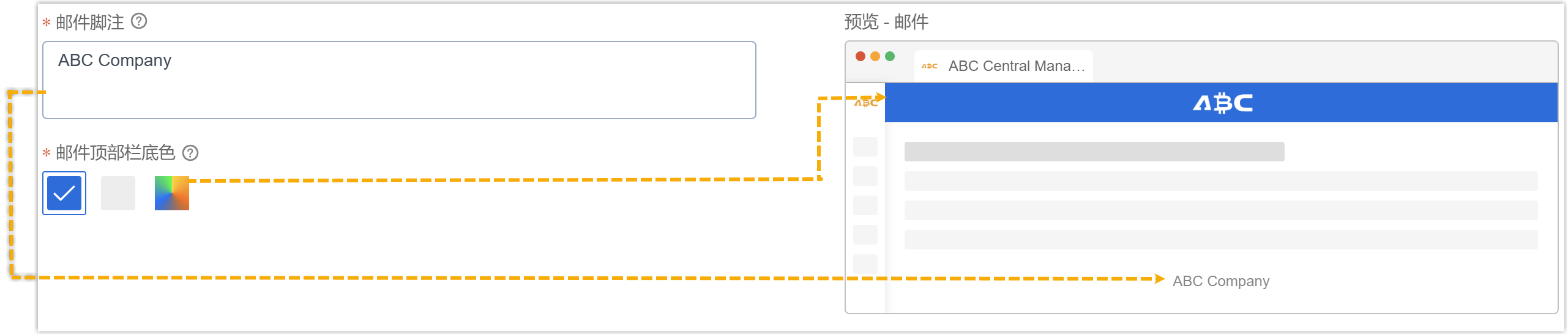 邮件脚注 输入邮件脚注,该脚注将显示在平台邮件的底部。 注:- 邮件脚注最多支持 500 个字符,并支持使用 HTML 标签 -