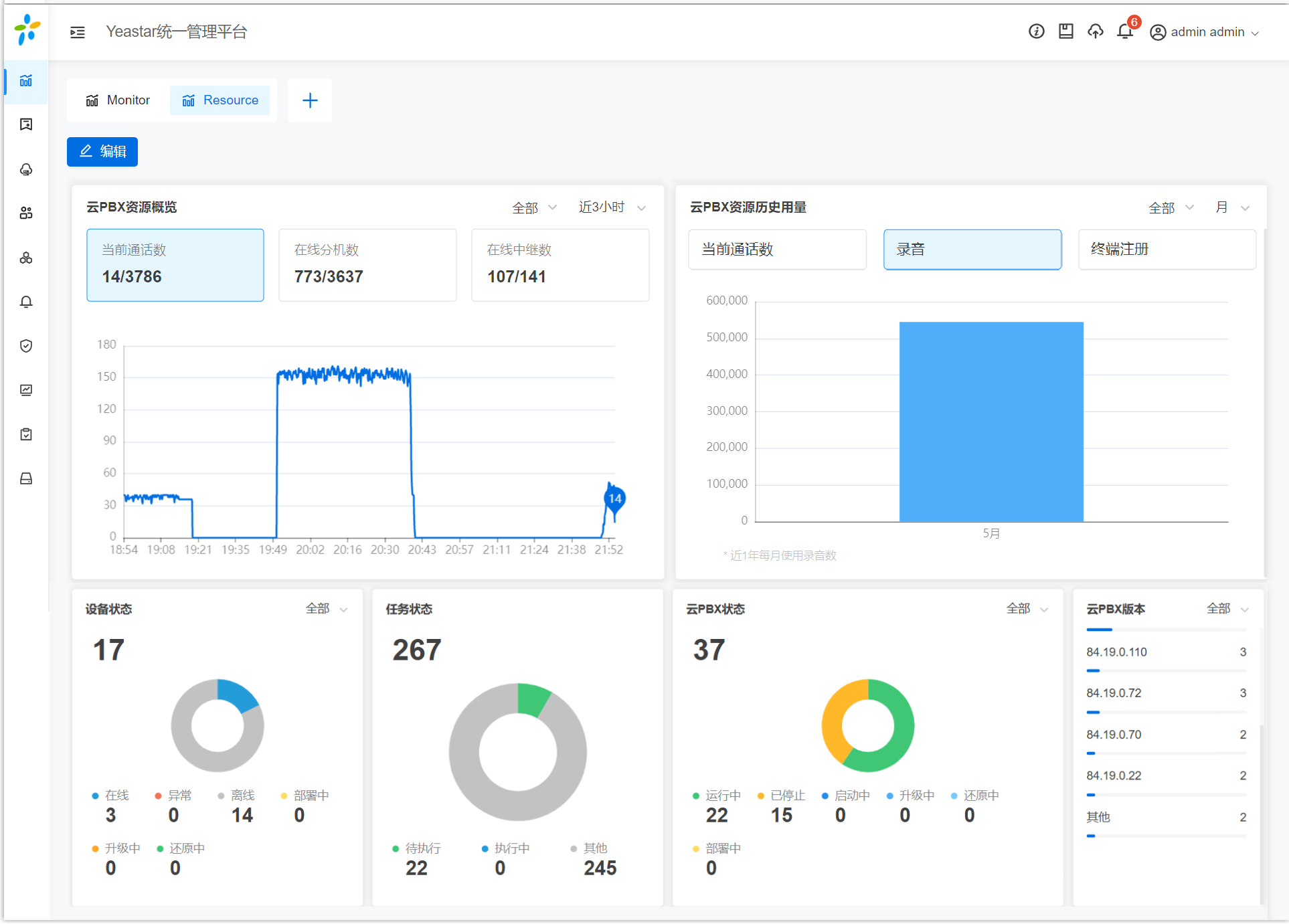 统计 P 系列 PBX 系统、SBC 集群、SBC 代理集群、PBX Hub集群和 Yeastar 统一管理平台 的任务总数,并按任务执行状态分类汇总任务数量。