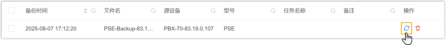 - 如需从本设备的备份包进行还原,请参见 还原 P 系列云 PBX 到源备份包。