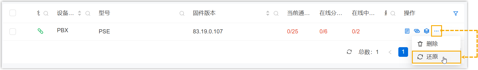 ,且页面弹出窗口,提示 PBX 系统正在还原。提示: 你可以点击 收起,将窗口折叠到右下角。