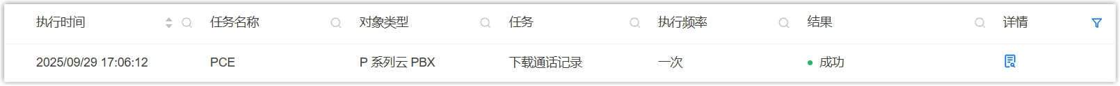 - Yeastar 统一管理平台会立即或在到达指定时间时下载指定云 PBX 的通话记录;你可以在 中查看执行结果。