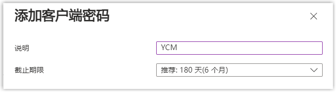 - 在 添加客户端密码 页面,添加说明并为客户端密码设置有效时间,然后点击