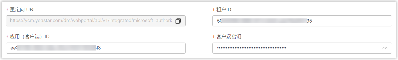 - 客户端密钥:粘贴 Microsoft Entra 应用程序的 客户端密码。