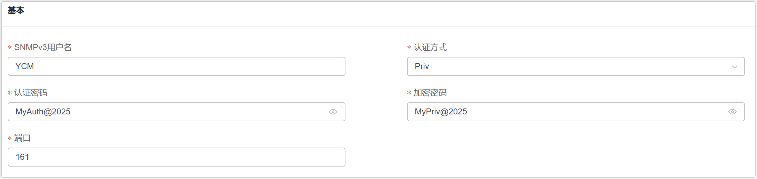 - 在 基本 栏,设置将受管设备添加到网络管理系统时所需的 SNMP 相关设置。