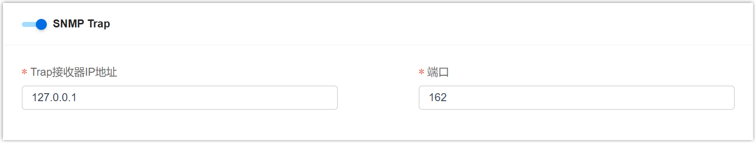 - 填写 SNMP Trap 接收器 (即网络管理系统) 的 IP 地址和端口。注: 如果通过 FRP 隧道转发 Trap 消息,需将此 IP 地址设置为