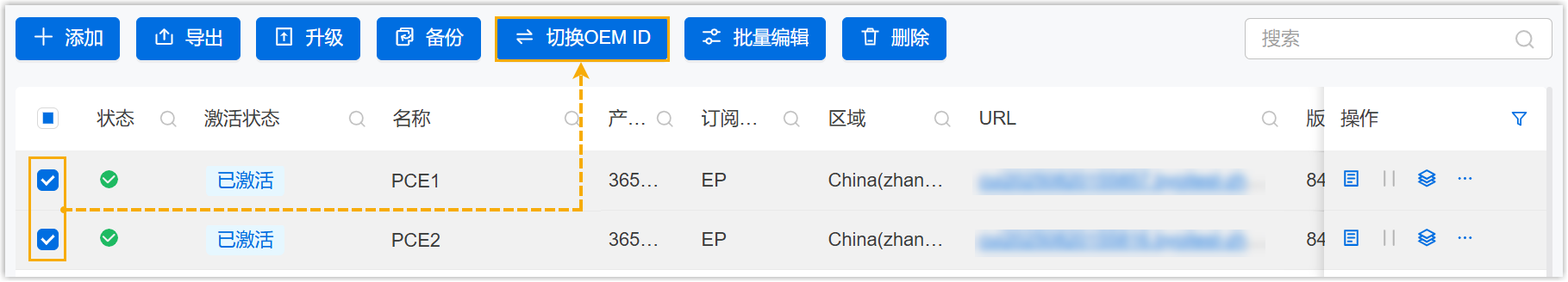 列表中出现 OEM ID 栏,显示每台云 PBX 的 OEM ID 信息。
