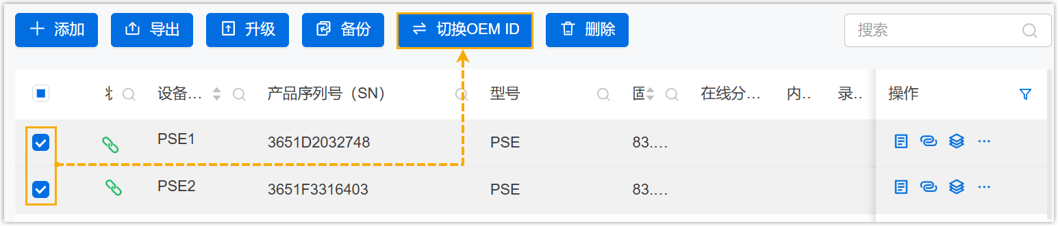 - 选择一到多台 P 系列软件版,然后点击 切换OEM ID。