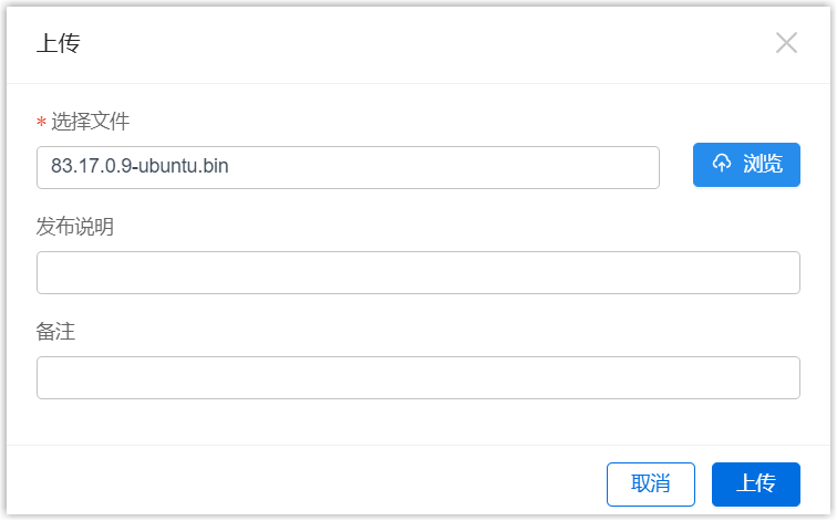 - 可选: 在 发布说明 栏,填写此固件版本的更新说明。