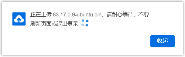 页面弹出一个窗口显示固件正在上传中,你可以点击 收起,将窗口最小化到右下角。