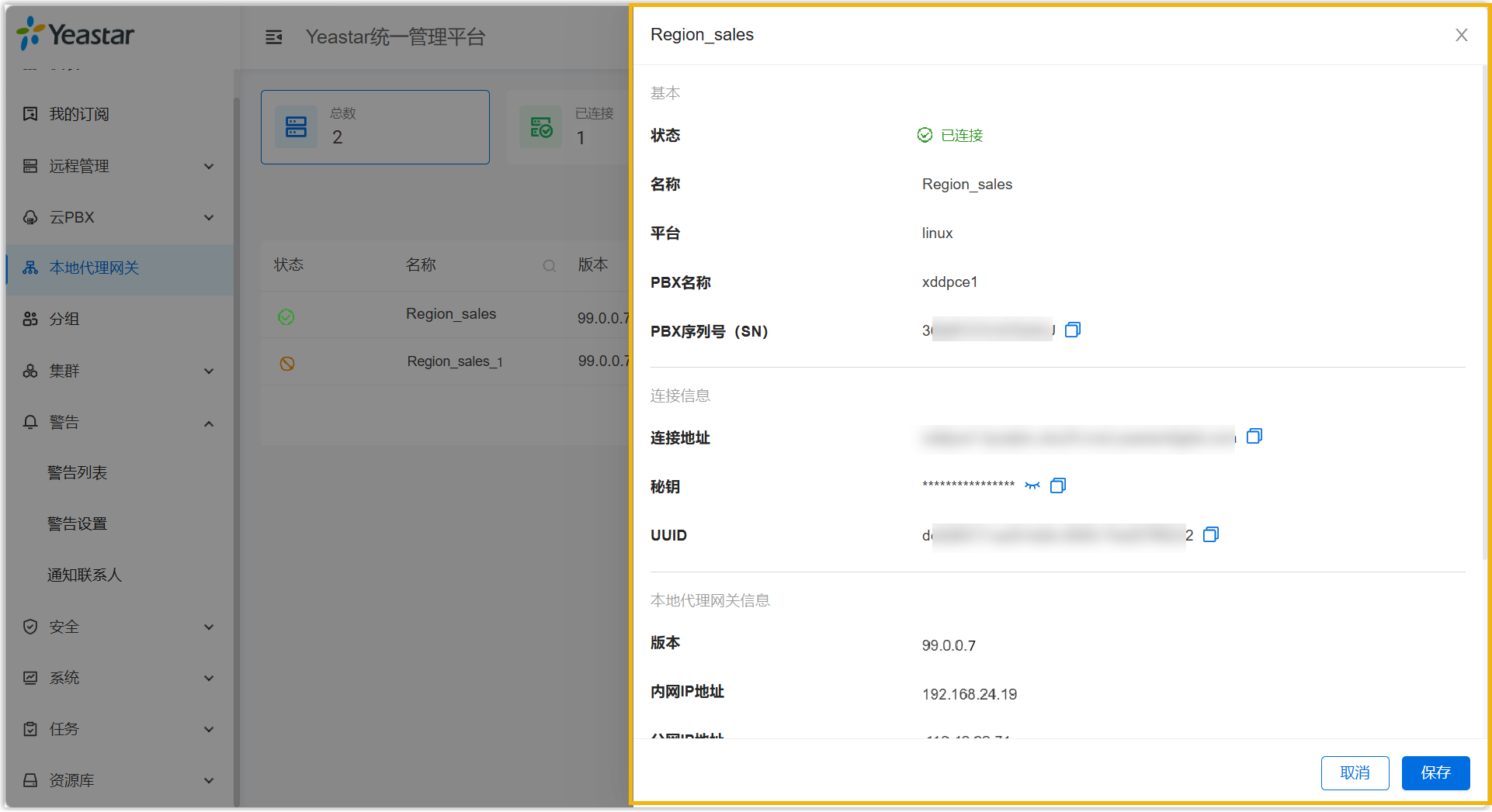 - 登录 Yeastar 统一管理平台,进入 本地代理网关。