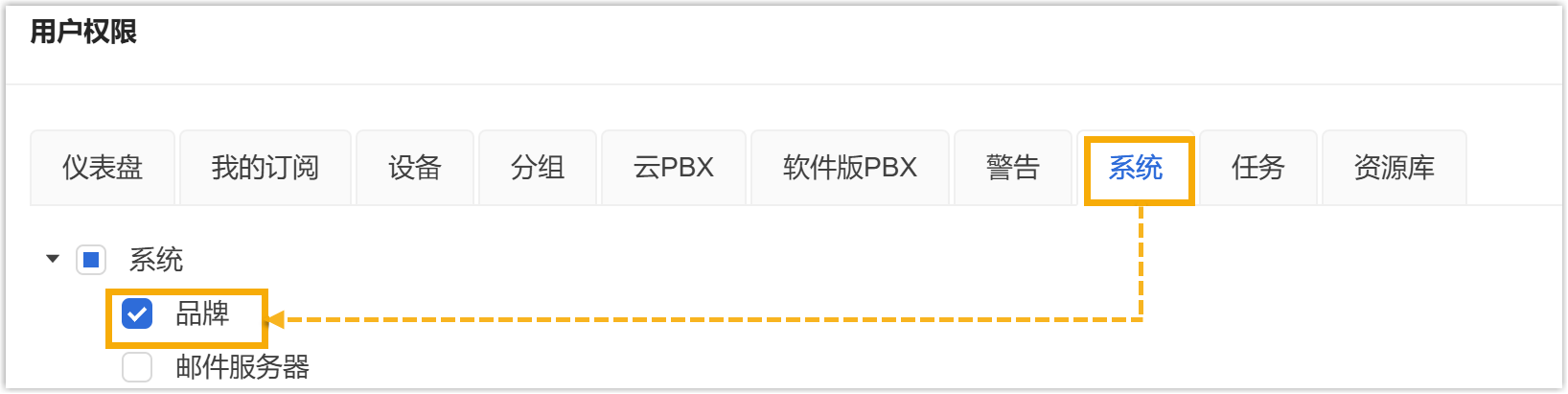 注: 品牌权限不能分配给托管用户,但可分配给同事 (路径:),以便同事可以共同管理品牌。