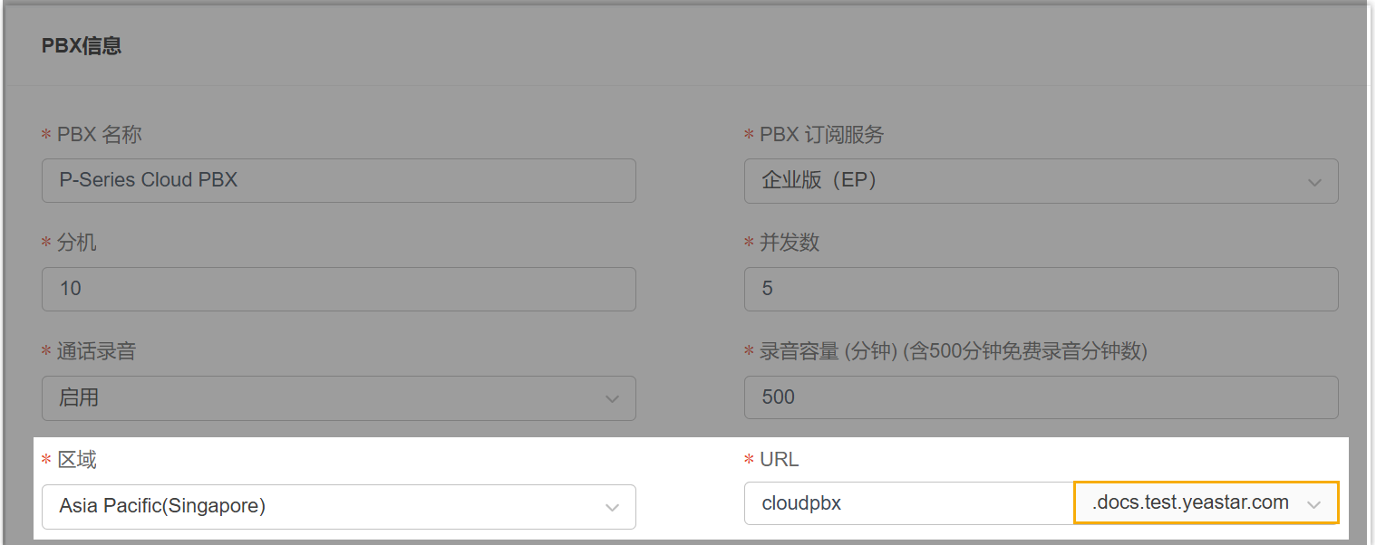 现在你可以在此区域中使用自定义域名创建云 PBX。