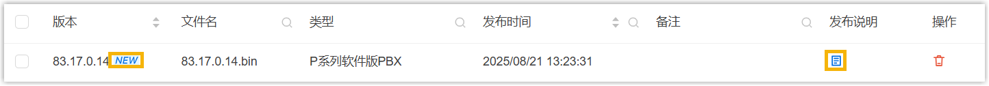 如需将远程连接到 Yeastar 统一管理平台上的 P 系列硬件版/软件版升级到新版本,请参见 升级 P 系列硬件版/软件版的固件 或 创建自动升级任务。