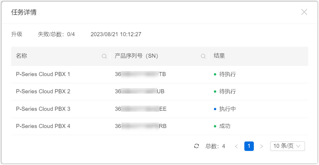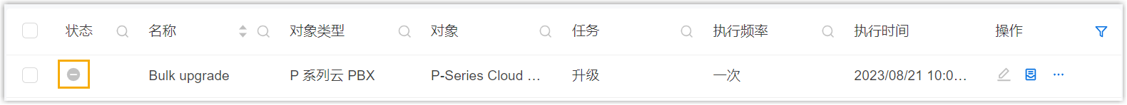 如有需要,你可以终止正在执行的任务。例如,你设置了升级多台 P 系列云 PBX 的任务,但在执行中由于兼容性问题需要停止升级,你可以终止此任务。