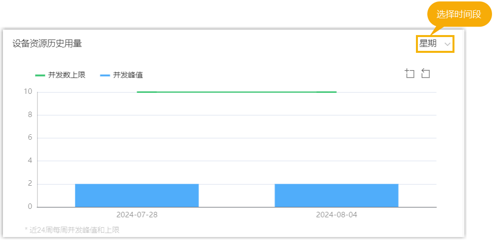 | 并发峰值 | 显示所选时间段内使用的最大通话并发数。 |
